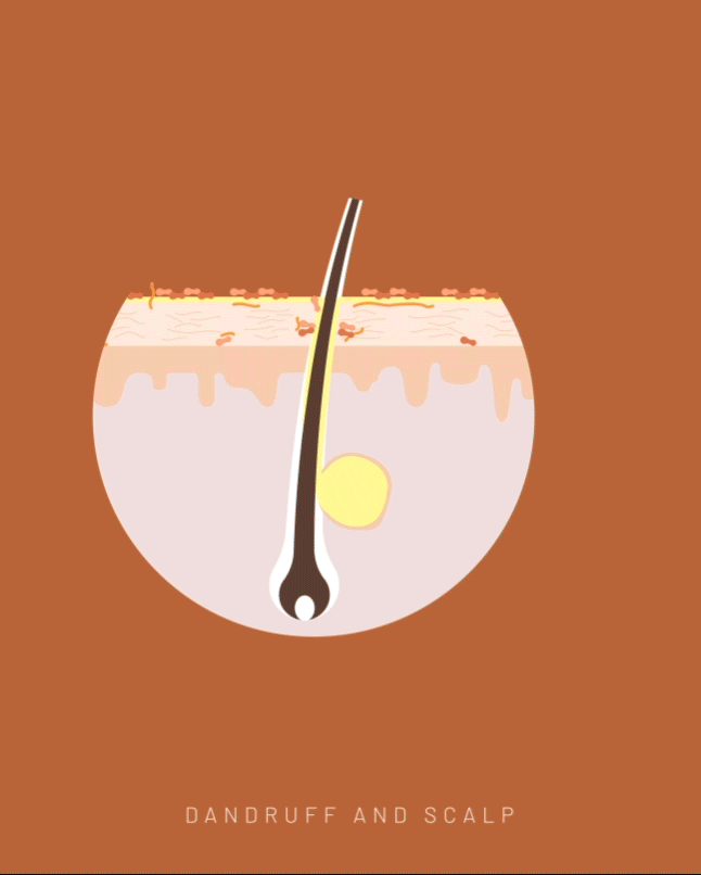 The outermost layer of the scalp, called the Epidermis, has a yeast called Malassezia that feeds on sebum from sebaceous glands. This yeast breaks down sebum into fatty acids, consuming the saturated ones and leaving the unsaturated ones to be reabsorbed into the scalp. This weakens the skin barrier and causes moisture loss. Normally, skin renews every 2-3 weeks, but this process speeds it up, causing cell buildup that appears as dandruff. This leads to itchiness and inflammation of the scalp. -